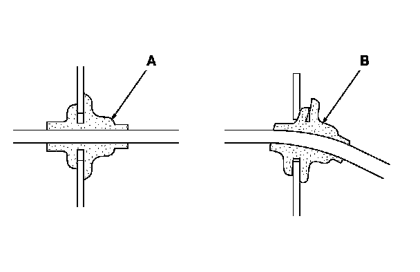 - Seat grommets in their grooves properly (A). Do not leave grommets distorted (B).