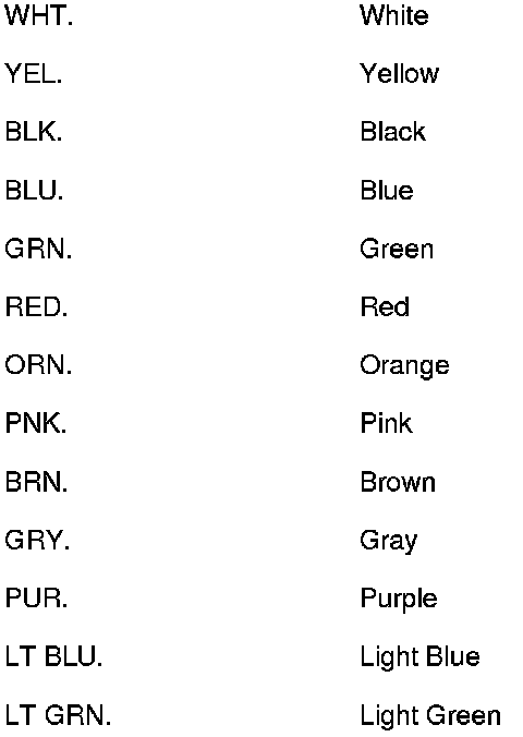 The following abbreviations are used to identify wire colors in the circuit schematics: