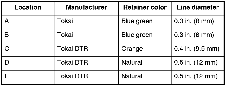 A disconnected quick-connect fitting can be reconnected, but the retainer on the mating line cannot be reused once it has been removed from the line. Replace the retainer when: