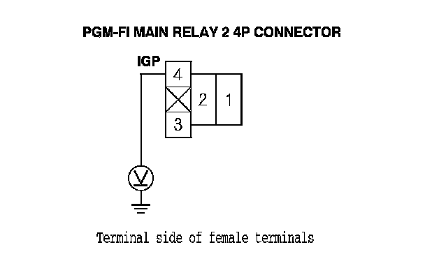5. Measure the voltage between PGM-FI main relay 2 4P connector terminal No. 4 and body ground.