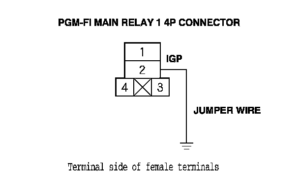 11. Connect PGM-FI main relay 1 4P connector terminal No. 2 to body ground with a jumper wire.