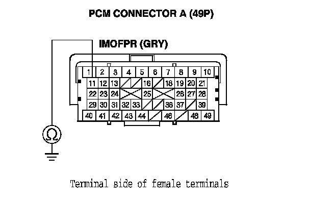 18. Check for continuity between body ground and PCM connector terminal A11.