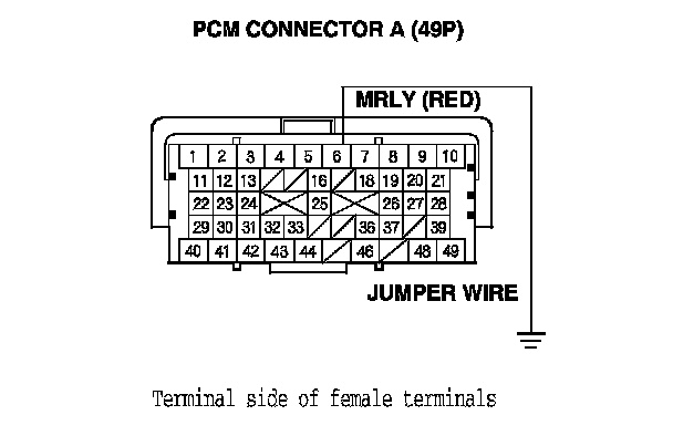 20. Connect PCM connector terminal A6 to body ground with a jumper wire.