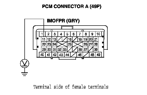 22. Measure the voltage between PCM connector terminal A11 and body ground.