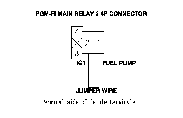 15. Connect PGM-FI main relay 2 4P connector terminal No. 3 to body ground with a jumper wire.