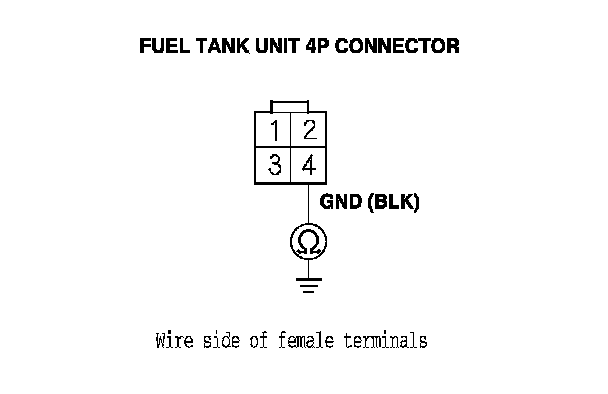36. Check for continuity between fuel tank unit 4P connector terminal No. 4 and body ground.