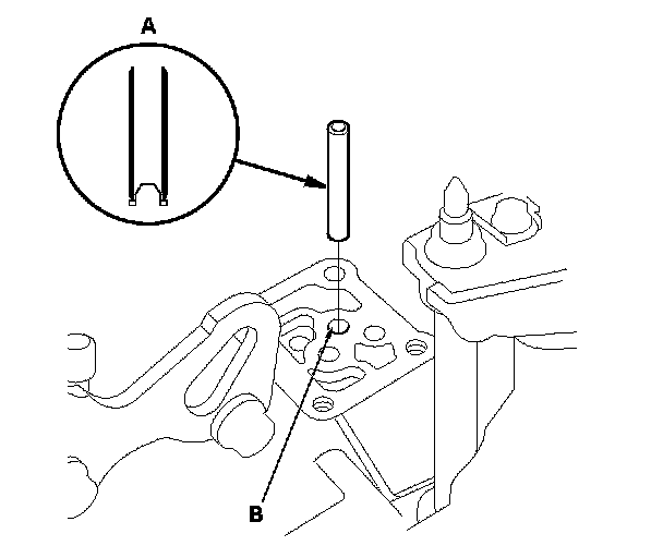15. Install the 8 x 53 mm ATF joint pipe (A) with the filter end into its mounting hole (B).