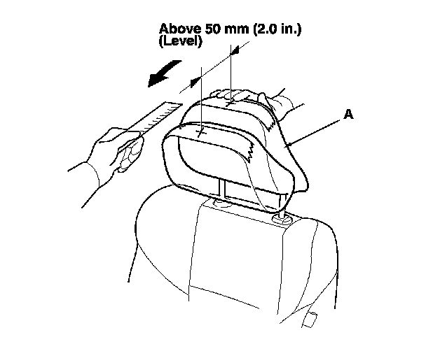 4. Push the head restraint (A) forward, and measure the horizontal head restraint movement. The head restraint should move more than 50 mm (2.0 in.) without resistance. If it is less than 50 mm (2.0 in.), or the head restraint does not move smoothly, replace the seat-back frame: