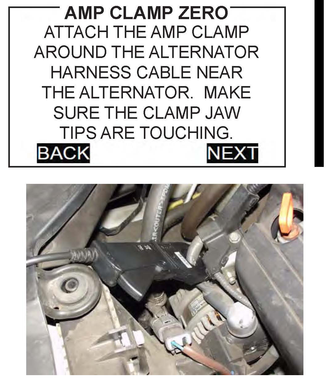 14. Zero the amp clamp following the on-screen instructions, making sure the clamp jaws are completely closed during the procedure.