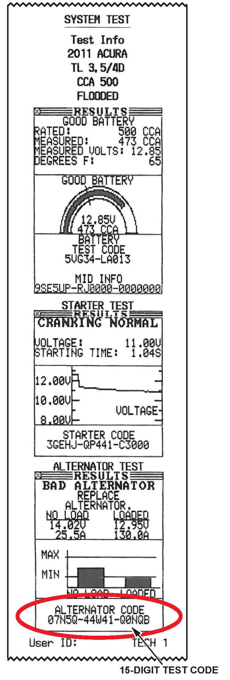 ^ For all DTC codes resulting in alternator replacement, you must do the alternator test to obtain the 15-digit test code.
