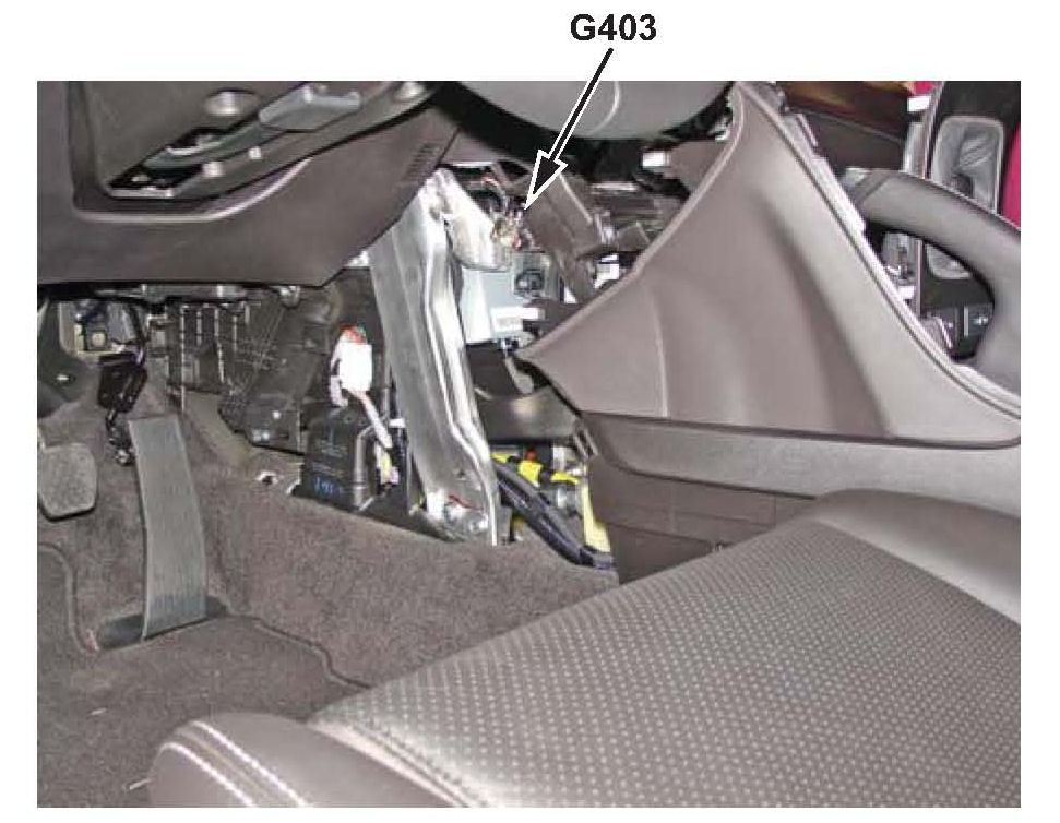 Slide it towards the back of the vehicle so you can get to body ground G403. The center console also includes these parts and connectors: