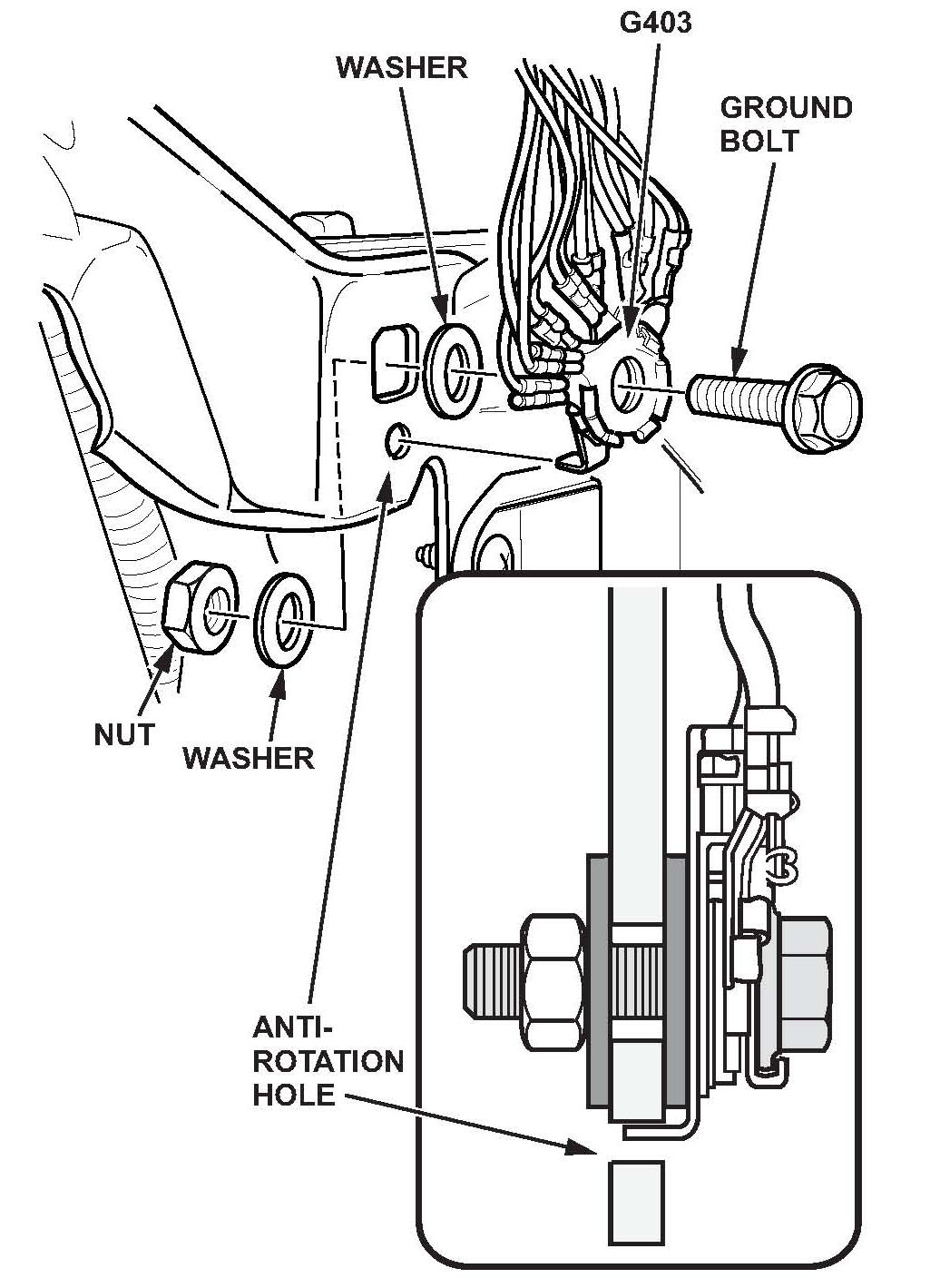 ^ Torque the ground bolt to 12 N.m (9 lb-ft).