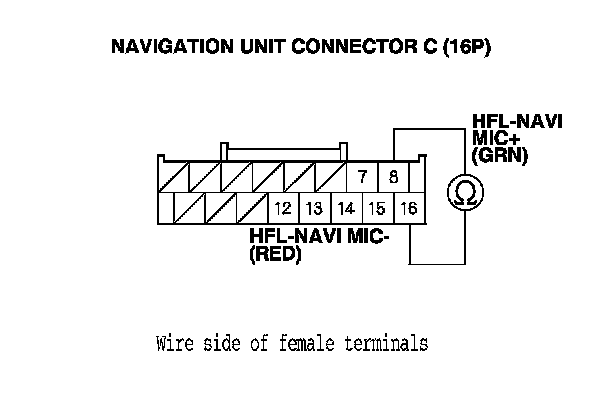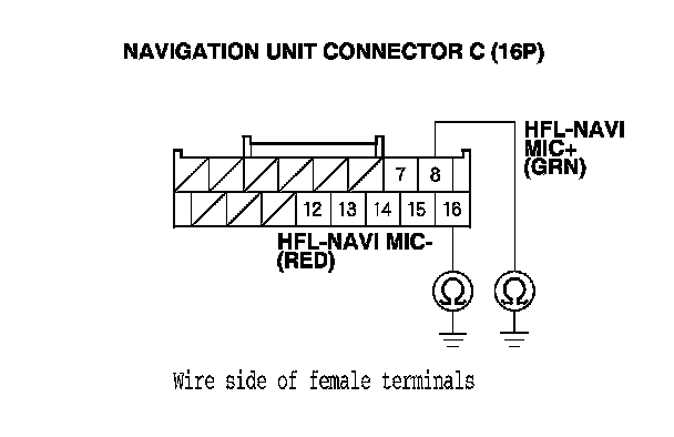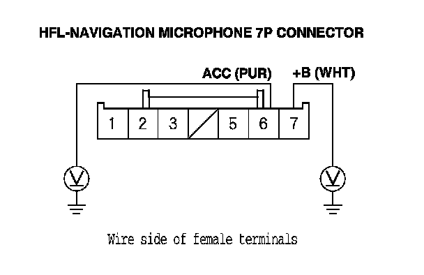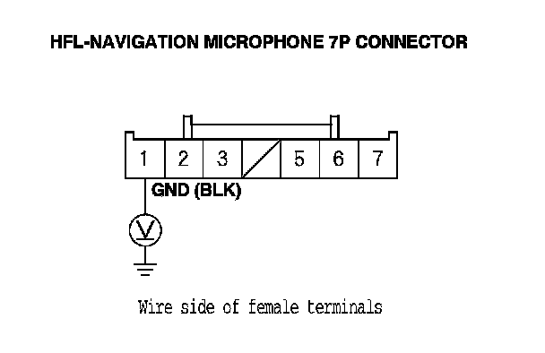 8. Measure the voltage between HFL-navigation microphone 7P connector terminal No. 1 and body ground.