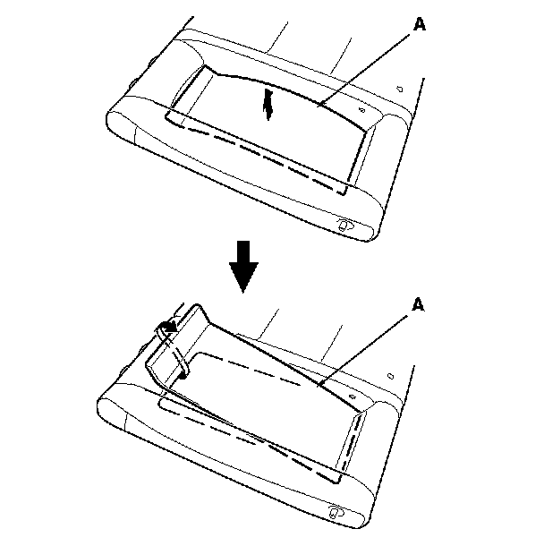 4. Left seat-back: Pull out the center area of the armrest back panel (A) to release the upper edge of the armrest back panel.