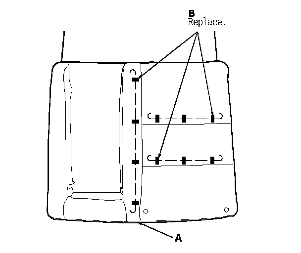 9. Pull back the edge of the seat-back cover (A) all the way around, and release the upholstery rings (B), then remove the seat-back cover.