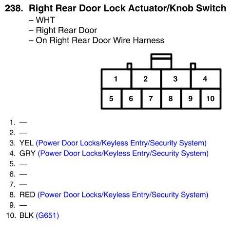View 238 - Right Rear Door Lock Actuator/Knob Switch Connector View