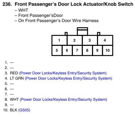 Front Passenger's Door Lock Actuator/Knob Switch Connector View