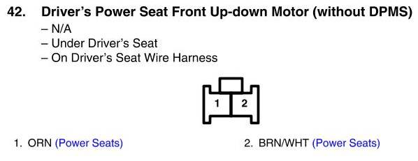 Driver's Power Seat Front Up-Down Motor Connector View (Without DPMS)