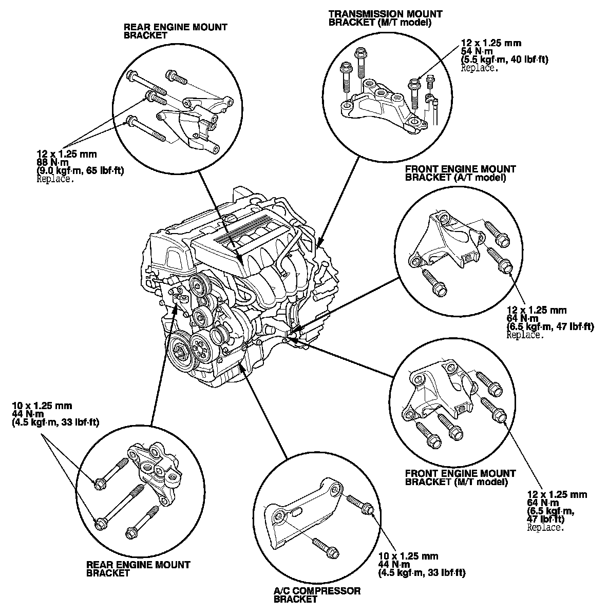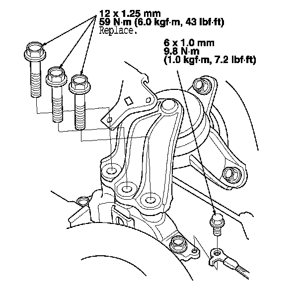 NOTE: Reinstall the mounting bolts and the support nuts in the sequence given in the following steps. Failure to follow this sequence may cause excessive noise and vibration, and reduce engine mount life.