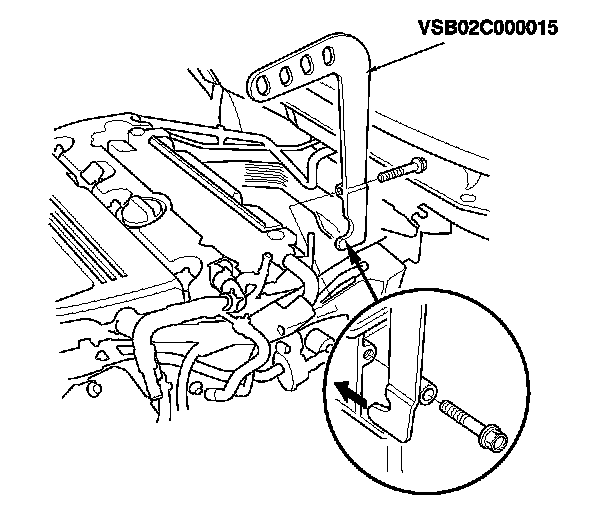 33. Loosen the mounting bolts for the side engine mount bracket, then retighten the bolts.