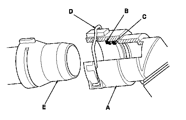 52. Check the lock (D). If the lock is damaged or deformed, replace it. When installing the new lock on the connector, push it straight down along the groove.