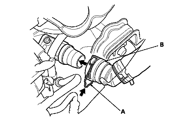 47. A/T model: Install the ATF cooler hoses (A) to the transmission, and secure the hoses with the clips (B). Service and Repair
