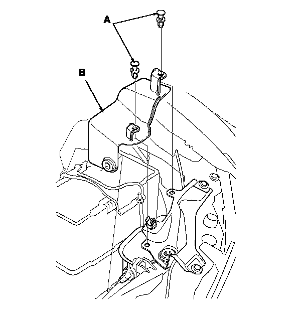 6. Remove the bolts and the radiator upper mount brackets (A).