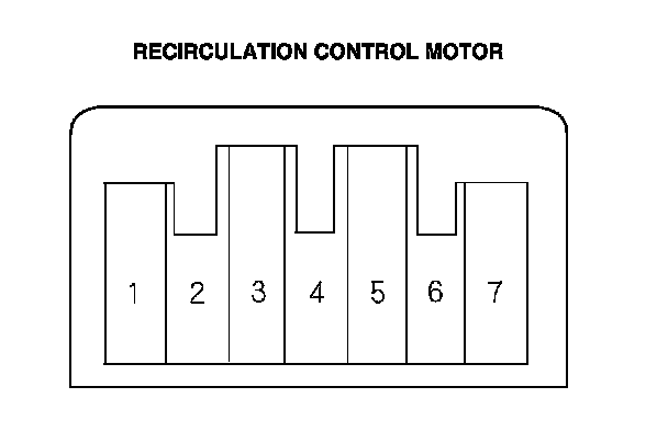 4. Measure the resistance between terminals No. 5 and No. 7 of the recirculation control motor. It should be between 4.2 and 7.8 kOhms.