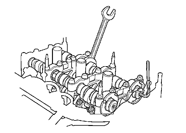 3. Hold the camshaft with an open-end wrench, then loosen the bolt.