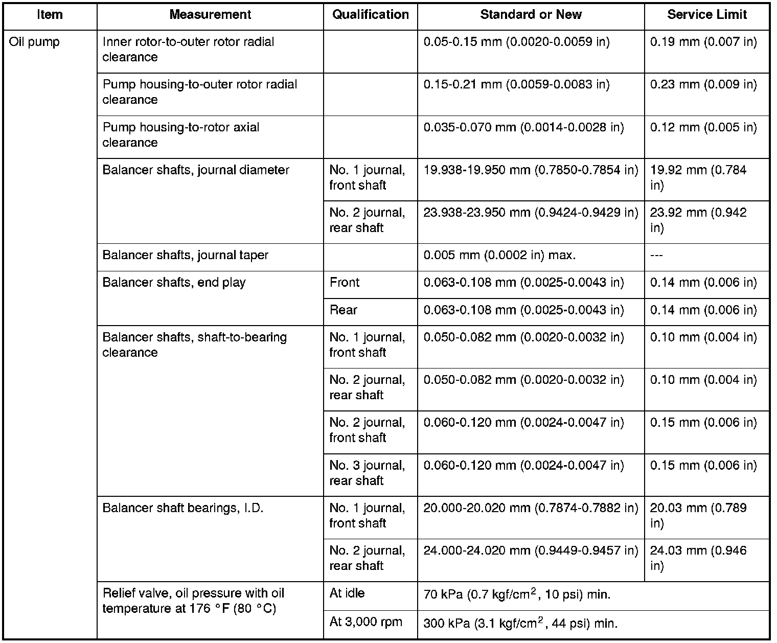 Oil pump Specifications