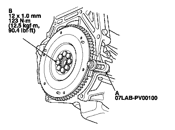 mounting bolts (B) in a crisscross pattern in several steps