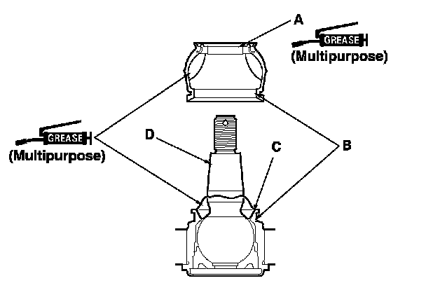 5. Pack fresh grease into the base (C). Do not let dirt or other foreign materials get into the boot.
