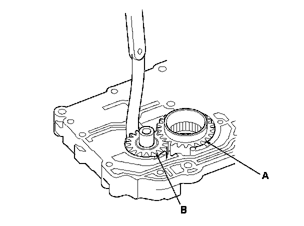 2. Measure the side clearance of the ATF pump drive gear (A) and the driven gear (B).