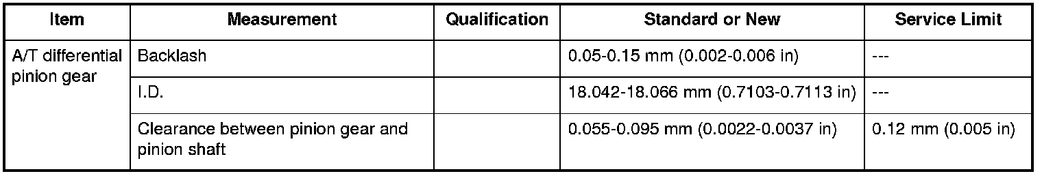 A/T Differential Pinion Gear Specifications (A/T)