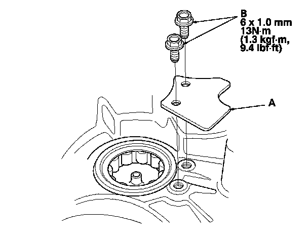 1. Remove the bearing set plate (A) from the clutch housing (B).