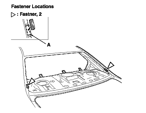 14. Attach the fasteners with the adhesive tape to the rear window opening flange (A) of the body on both sides.
