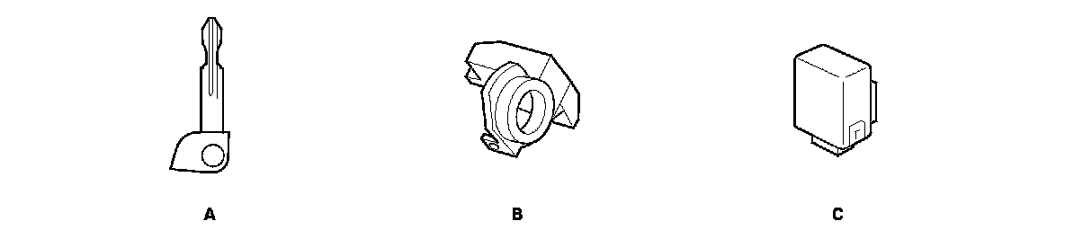 - The ignition switch control unit (C) is replaced.