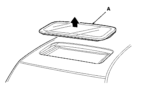 4. Remove the glass (A) by lifting it up. Do not damage the roof panel.