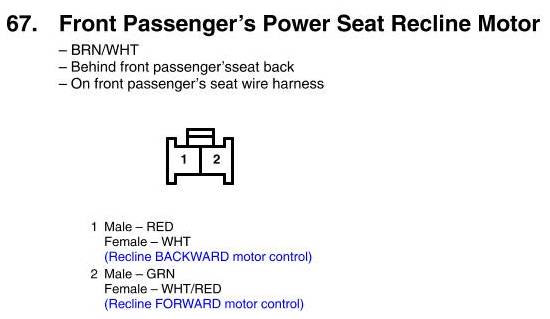 View 67 - Front Passenger's Power Seat Recline Motor Connector View
