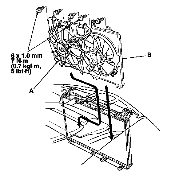 3. Install the condenser fan shroud assembly (B).