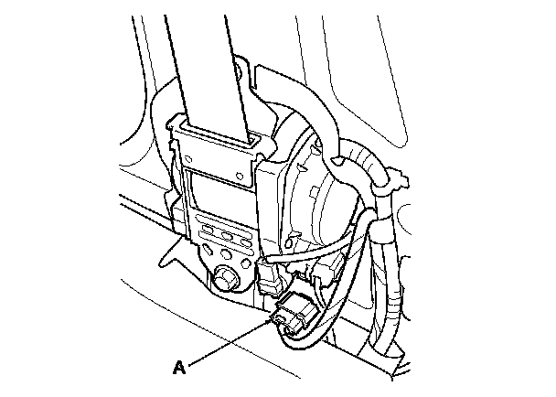 9. Disconnect both floor wire harness 4P connector (A) from the seat belt tensioners.