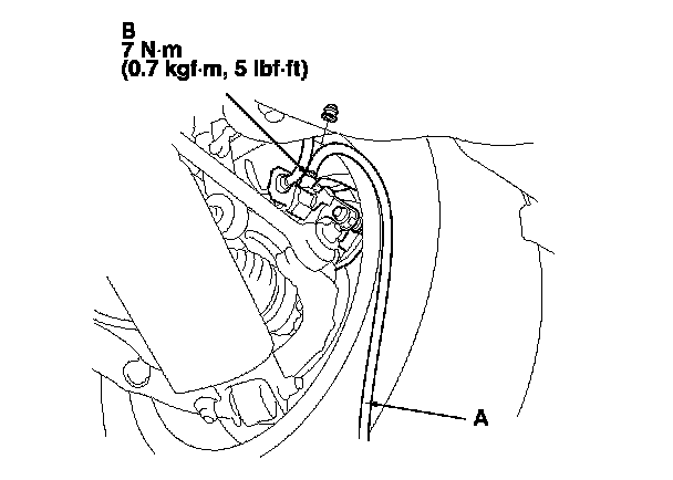 4. Attach a length of clear drain tube (A) to the bleed screw (B), then loosen the bleed screw to allow air to escape from the system. Then tighten the bleed screw securely.
