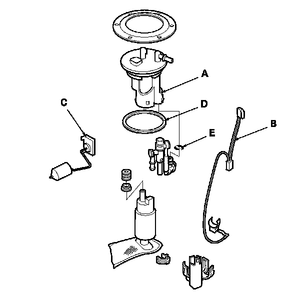 - When installing the fuel gauge sending unit (C), make sure the connection is secure and the connector is firmly locked into place. Be careful not to bend or twist it excessively.