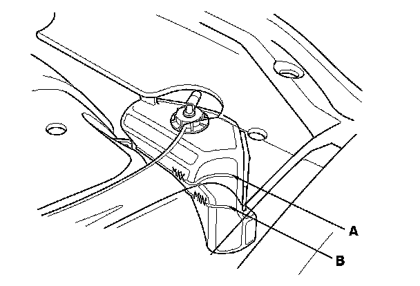 Make sure it is between the MAX mark (A) and MIN mark (B).
