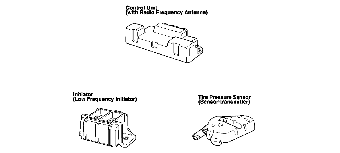 Mounted on top of the brake pedal support member, the control unit sends signals to the initiators and receives signals from the tire pressure sensor to verify pressure sensor IDs every time the engine starts. It also receives signals from the transmitters inside the tire pressure sensors, and it continuously monitors and controls the system.