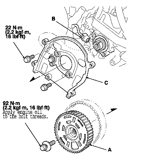 3. Disconnect the CMP sensor connector (B), then remove the back cover (C).