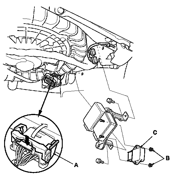 5. Remove the nuts (B) and the throttle actuator control module (C).