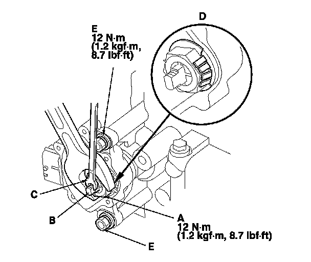16. Tighten the bolts (E) securing the transmission range switch to 12 N-m (1.2 kgf-m, 8.7 lbf-ft).