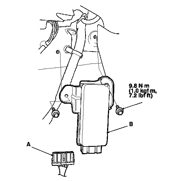 3. Remove the fuel pump control module (B).