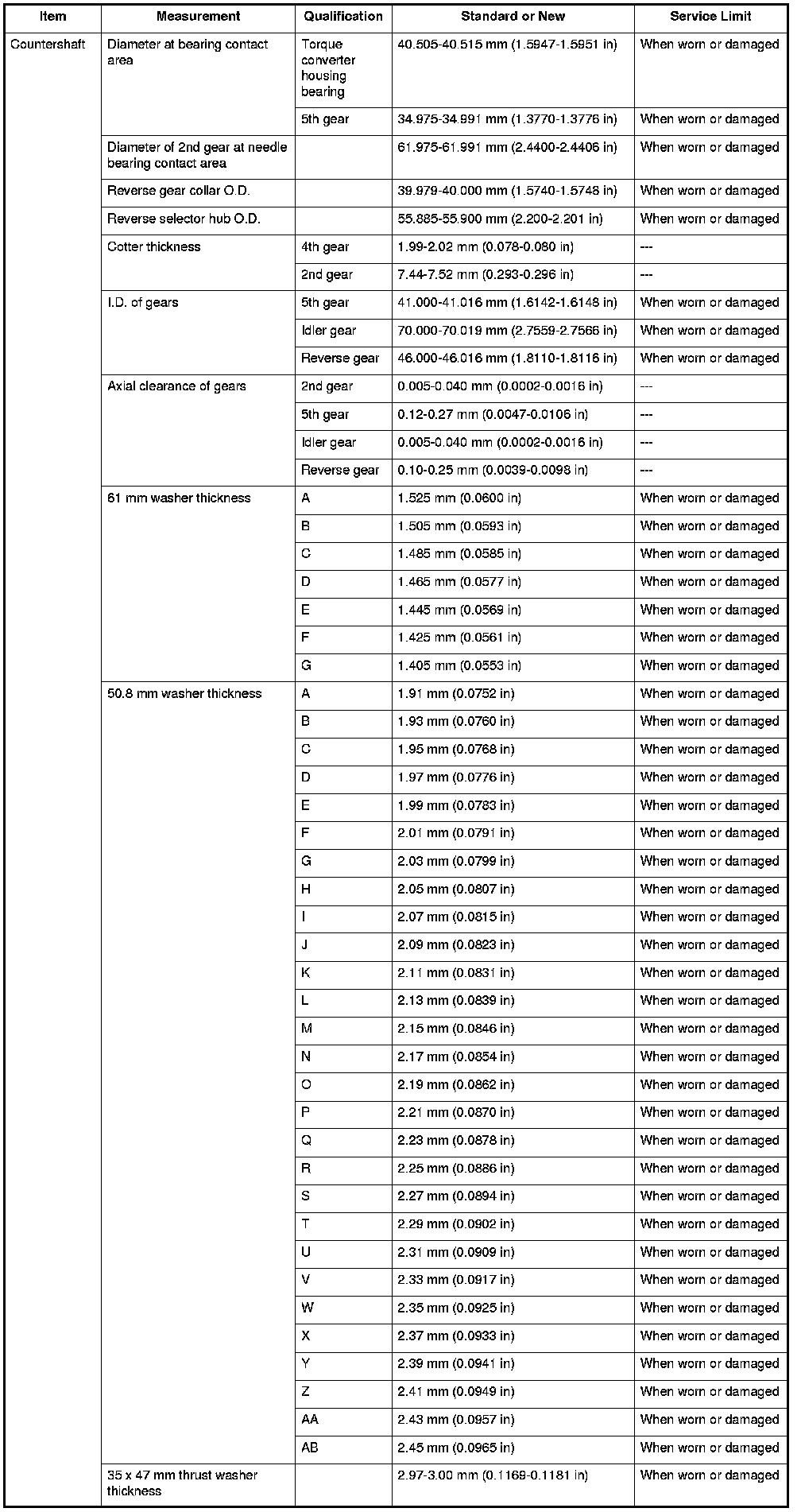 Countershaft Specifications